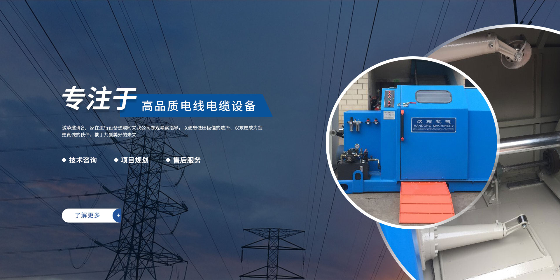 常州漢東機(jī)械始創(chuàng)于2006年,是集電線電纜機(jī)械設(shè)計(jì)、開發(fā)、制造、安裝、調(diào)試為一體化的高科技企業(yè)。本公司自開業(yè)以來(lái),積極引進(jìn)日本,歐美等國(guó)外電線電纜設(shè)備之先進(jìn)技術(shù),先后成功推出了達(dá)到行業(yè)先進(jìn)水平的電線電纜設(shè)備,主要產(chǎn)品有擠出、繞包、束線、成纜等電線電纜固定設(shè)備。在提供系統(tǒng)設(shè)備的同時(shí),還向客戶提供售前技術(shù)咨詢、項(xiàng)目規(guī)劃、以及售后服務(wù)。我公司本著“以人為本、科技先導(dǎo)、用戶為上”的宗旨,為客戶提供牢靠的產(chǎn)品與省心的服務(wù)。漢東愿成為您更真誠(chéng)的伙伴,攜手共創(chuàng)美好的未來(lái)! 了解更多+大核心優(yōu)勢(shì)
